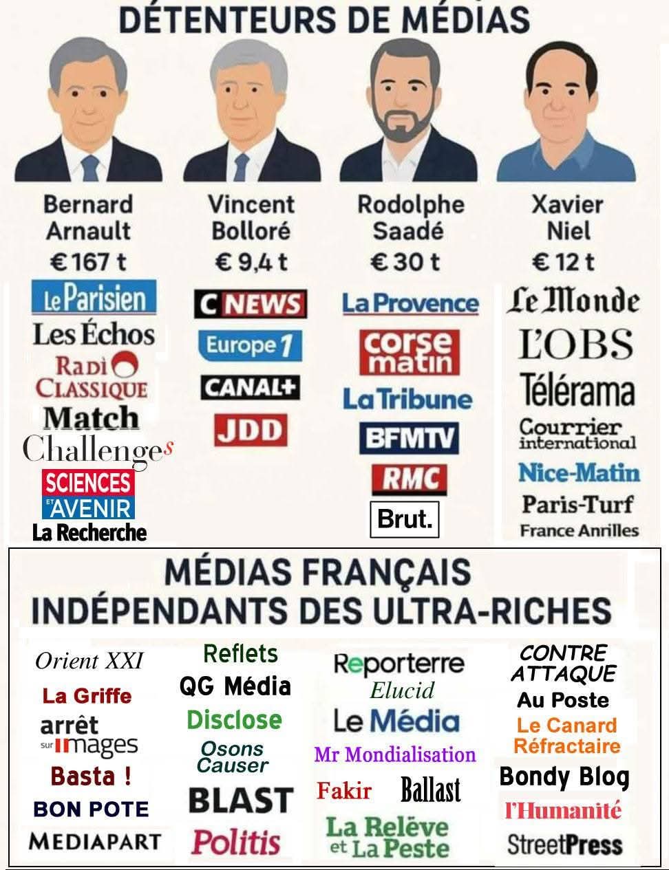 – le graphique que tu viens de montrer (souvent mis à jour par Le Monde diplomatique et Acrimed) ;